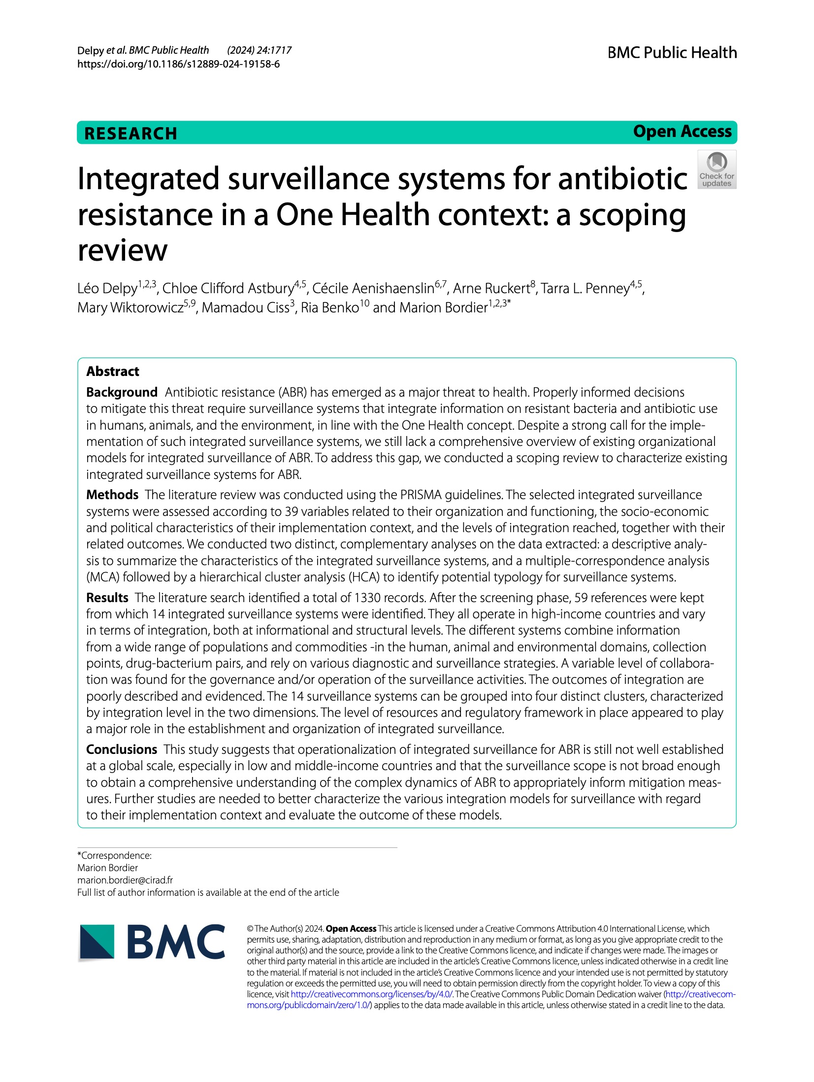 Integrated surveillance systems for antibiotic resistance in a One Health context: a scoping review